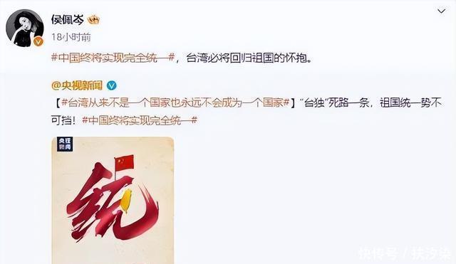 比如,她会主动转发央视的微博,明确说“台湾唯一称谓是中国台湾省”,而且不只在内地平台发,在外面也同步发声。